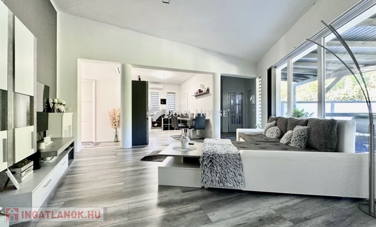 Fedezze fel új Otthonát Pécs- Vasason - tágas 4 szobás ház eladó!Eladó Modern, Minimál stílusú ház Pécs-Vasas kedvet részén!Pécs-Vasas egyik legkeresettebb utcájában eladó korszerű és TELJES KÖRŰEN FELÚJÍTOTT egyszintes családi ház. Az ingatlan 2015-ben épült és az elmúlt három évben teljes felújításon esett át, így újszerű állapotban várja új lakóit.A 103m2-es lakótér 530m2-es telken sarok telken helyezkedik el, amely ideális helyszínt biztosít a család mindennapjaihoz. A ház minimál stílusa és tágas, világos belső terei igazi otthonná varázsolják az ingatlant, amihez kapcsolódik egy 32m2-es részben fedett terasz, amely igény szerint beépíthető, ezáltal a nappali mérete jelentősen növelhető. A fűtést gázkazán biztosítja, továbbá 3,5kw-os hűtű-fűtő klíma ad további lehetőséget.A ház magas kopásállású laminált parkettával burkolt, minden helyiségben radiátorok, míg a fürdőben padlófűtés és törölközőszárító radiátor biztosítja a kényelmet. Az elektromos hálózat felújításon esett át és három fázis rendelkezésre áll, amivel a ház energiaigénye TELJES KÖRŰEN biztosított. 8,6kw napelemrendszer fedezi az ingatlan teljes áramellátását, ami gazdaságossá és környezetbaráttá teszi az otthont. Az udvaron 2 db mobilgarázs és fúrt kút is áll rendelkezésre. Az udvar térkövezett, amely kényelmes parkolási lehetőséget ad, míg a terasz fölött féltető található. Az ingatlant teljes körbekerítették lemezkerítéssel, így biztonságos és privát teret nyújt a család számára. Az ingatlan IDEÁLIS LOKÁCIÓJA további előnyt jelent: közelben buszmegálló, bolt, iskola, óvoda és posta is elérhető. Pécs városközpontja mindössze 5km-re található és helyi buszjárattal könnyedén elérhető. NE HAGYJA KI EZT A REMEK LEHETŐSÉGETHívjon és nézze meg személyesen ezt a kitűnő adottságokkal rendelkező családi háza.