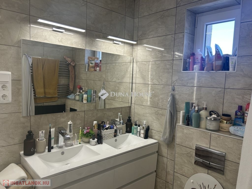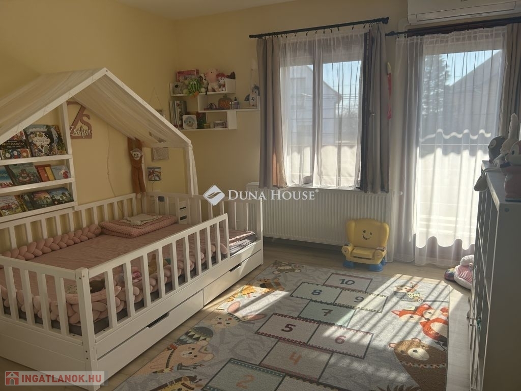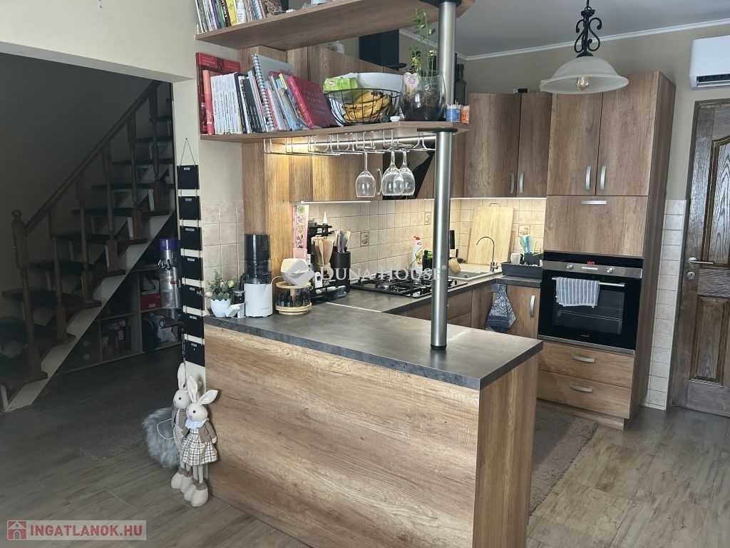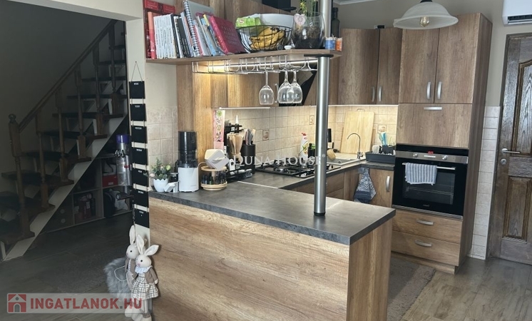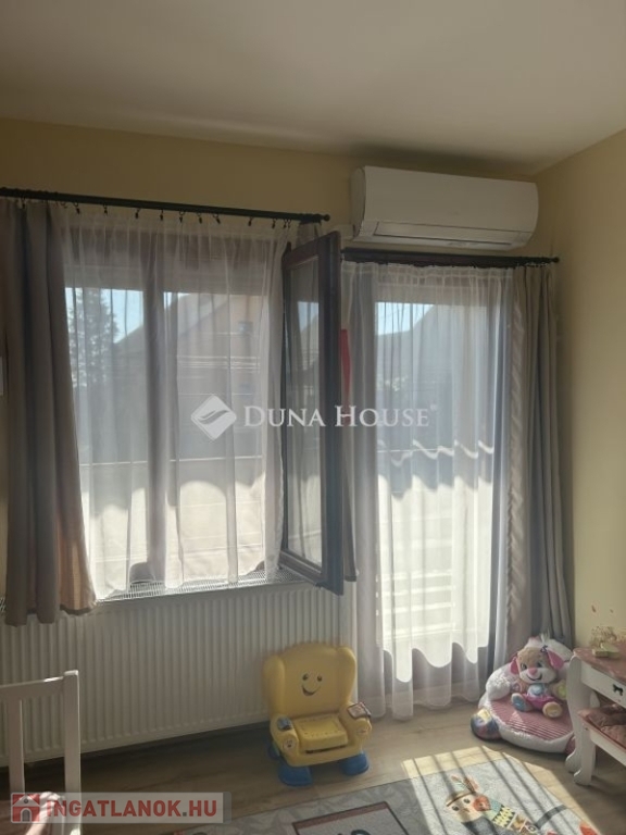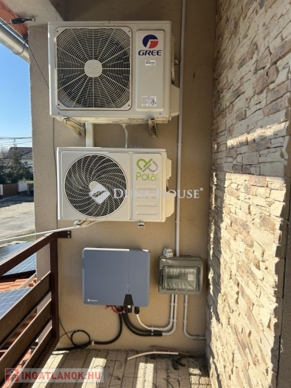 Tolna Újtelep részén, kedvelt utcában eladásra kínálok egy 147 m-es kétszintes családi házat 728 m2-es sarok telekkel. A tégla falazatú, cserép fedésű lakóházban nappali, 3 szoba, gardrób, konyha+étkező, fürdőszoba, 2 wc háztartási helyiség valamint egy Hörmann ajtóval ellátott garázs kapott helyet. A földszinten és az emeleten is két fedett terasz, található. A nappaliból nyíló terasz burkolattal illetve ponyvával lett ellátva, így télikertként is használható. A teljes víz-, szennyvíz-, villany-, gázhálózat felújításra került. Áramellátás 3 fázis, 3x32 A. A vízvezetéken vízlágyító berendezés beépítése történt. A házon 17 kW-os napelemrendszer került elhelyezésre, mely 2032-ig saldo-s elszámolású. A rendszer kiépítésével az áram + fűtés + elektromos autó töltés költsége díjmentesre kalkulálható. A gázkazánnal kialakított központi fűtés mellett 6 darab klíma is felszerelésre került. A nappalban, az egyik emeleti szobában és a fürdőszobában padlófűtés található. A teljes lakóházban a burkolatok cserélve lettek. Az ingatlan kívülről 10 cm, a födém pedig 40 cm-es szigetelést kapott. A kert parkosított, öntözőrendszerrel van ellátva, fúrt kút is rendelkezésre áll. Új kerítés mindkét utcai oldalon, valamint a kocsibeálló és a járdaszakasz is térköves. A z udvaron helyet kapott egy 30 m2-es garázs, kettő 15 m2-es tároló és egy 45 m2-es kerthelyiség. A garázsban elektromos autótöltő lett beépítve. Mindkét garázsbejárónál elektromos úszókapuval található.Amennyiben felkeltettem érdeklődését, hívjon bizalommal!