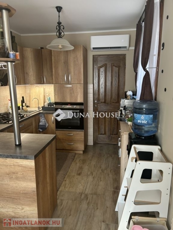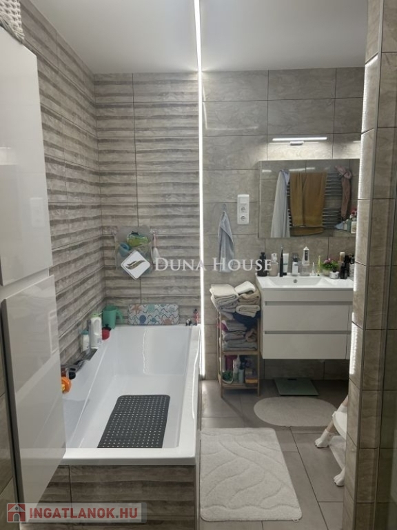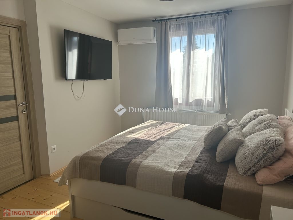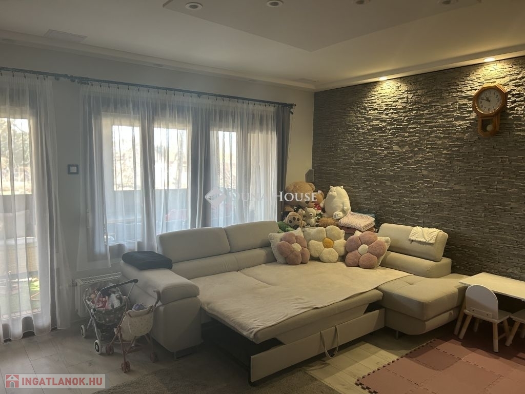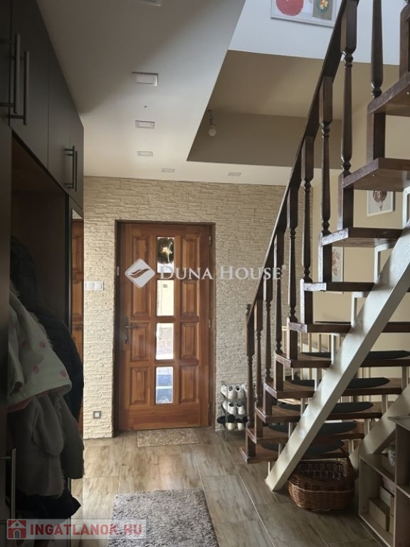 Tolna Újtelep részén, kedvelt utcában eladásra kínálok egy 147 m-es kétszintes családi házat 728 m2-es sarok telekkel. A tégla falazatú, cserép fedésű lakóházban nappali, 3 szoba, gardrób, konyha+étkező, fürdőszoba, 2 wc háztartási helyiség valamint egy Hörmann ajtóval ellátott garázs kapott helyet. A földszinten és az emeleten is két fedett terasz, található. A nappaliból nyíló terasz burkolattal illetve ponyvával lett ellátva, így télikertként is használható. A teljes víz-, szennyvíz-, villany-, gázhálózat felújításra került. Áramellátás 3 fázis, 3x32 A. A vízvezetéken vízlágyító berendezés beépítése történt. A házon 17 kW-os napelemrendszer került elhelyezésre, mely 2032-ig saldo-s elszámolású. A rendszer kiépítésével az áram + fűtés + elektromos autó töltés költsége díjmentesre kalkulálható. A gázkazánnal kialakított központi fűtés mellett 6 darab klíma is felszerelésre került. A nappalban, az egyik emeleti szobában és a fürdőszobában padlófűtés található. A teljes lakóházban a burkolatok cserélve lettek. Az ingatlan kívülről 10 cm, a födém pedig 40 cm-es szigetelést kapott. A kert parkosított, öntözőrendszerrel van ellátva, fúrt kút is rendelkezésre áll. Új kerítés mindkét utcai oldalon, valamint a kocsibeálló és a járdaszakasz is térköves. A z udvaron helyet kapott egy 30 m2-es garázs, kettő 15 m2-es tároló és egy 45 m2-es kerthelyiség. A garázsban elektromos autótöltő lett beépítve. Mindkét garázsbejárónál elektromos úszókapuval található.Amennyiben felkeltettem érdeklődését, hívjon bizalommal!
