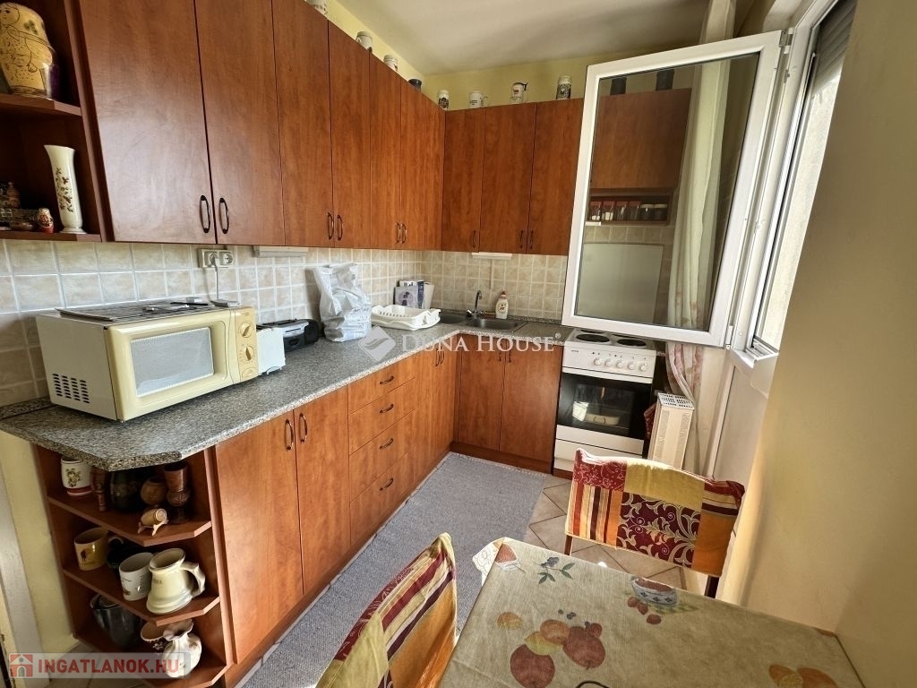Pécs-Kertvárosban, a Siklósi úton, IV/4. emeleti, 54 m2-es, átalakított, 3 szobás panellakás, szigetelt épületben eladó. Az eredetileg 1 hálószoba + nappalis ingatlant átalakították és a nappaliból leválasztottak még egy hálószobát, így 2 hálószoba található az ingatlanban a nappali mellett. A burkolatokat, a konyhabútort és a Ny-i oldalon lévő nyílászárókat egy korábbi felújításkor kicserélték.