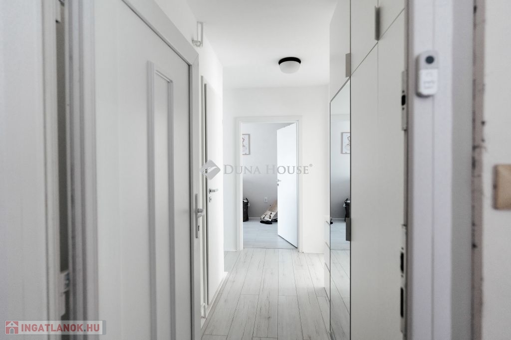 Teljes körűen felújított 3 szobás teraszos lakás eladó Pécs-Kertváros kedvelt részén!Pécs Kertvárosban a Szabó Ervin téren kínálunk megvételre egy 63 m²-es, 3 szobás, teraszos lakást, amely egy liftes társasház 6. emeletén található. A lakás 2021-ben teljes körű felújításon esett át, így új tulajdonosának egy modern, igényes és azonnal költözhető otthont kínál.A felújítás során megvalósult: új műanyag nyílászárók redőnnyel és szúnyoghálóval teljes villany- és vízvezeték hálózat csere igényes IKEA konyhabútor teljes gépesítéssel egyedi mérők, kedvező fenntartási költségek modern, okosotthon rendszerrel vezérelhető világításHelyiségek: tágas nappali 2 külön nyíló hálószoba konyha fürdőszoba külön WC közlekedő kényelmes méretű terasz tökéletes pihenéshez vagy reggeli kávézáshozA lakáshoz külön tároló is tartozik, ami nagy segítséget jelent a mindennapokban.Kiváló elhelyezkedés:A közelben minden fontos infrastruktúra megtalálható. A parkolás mindig könnyen megoldható, akár több autóval is.Az ingatlan 3%-os hitelprogram keretében is megvásárolható, amelynek teljes körű ügyintézésében is segítséget nyújtunk.Ha egy igényesen felújított, világos és kiváló elhelyezkedésű lakást keres Pécs-Kertvárosban, ne hagyja ki ezt a lehetőséget! Keressen bizalommal a megtekintés miatt!