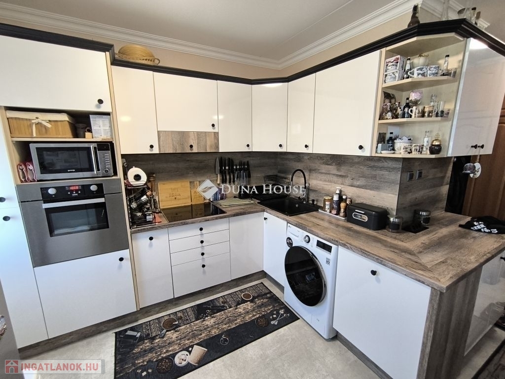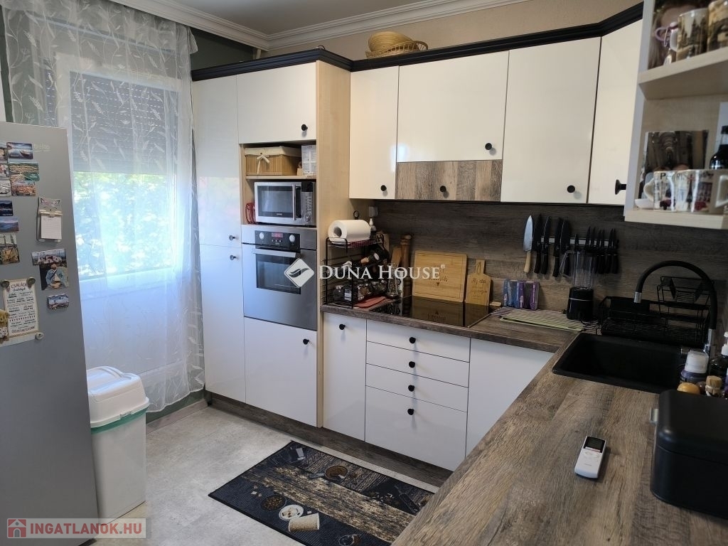 Eladó Pécsett-Rózsadombon a Fagyöngy u-ban egy 3. emeleti, 74nm-es, erkélyes, (3,5 szobás átalakított) 3 külön nyíló szobás panel lakás.A lakás teljesen felújított észak-déli tájolású.A konyha és a félszoba közötti válaszfal bontását követően egy nagy, 16 m2- es konyha - étkező lett kialakítva, modern bútorral, indukciós főzőlap + sütő és mosogatógép is van.Az épület szigetelt, műanyag nyílászárókkal ellátott. Fűtése távfűtés költségmegosztóval. Elrendezése kiváló nagy előszoba beépített szekrénnyel. A fürdő teljes körű felújításon esett át a megszokott egy csaptelep mellé beépítésre került egy kádtöltő zuhany váltós csaptelep is. Műanyag bejárati ajtó lett beépítve valamint a beltéri ajtók is cserélve lettek. A folyosón a konyhában étkezőben vinyl padló van. Szobában az eredeti laminált padlóra padlószőnyeg került. Minden ablakon redőny és szúnyogháló van. Az erkély tavasszal lett felújítva. Új szúnyoghálós redőny és padlóburkolat került ide is. Minden szobába és az étkezőbe tavasszal prémium kategóriás huzatmentes klíma lett telepítve.Az alagsorban van egy 2 lakás által használt nagy tároló is.Az ingatlan közelében buszmegálló (50m), bolt, posta, iskola, óvoda, orvosi rendelő, gyógyszertár található. A berendezési tárgyak alku tárgyát képezik.Amennyiben felkeltette érdeklődését, keressen bizalommal!