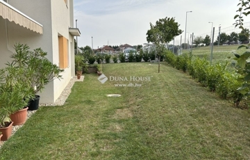 Eladó újszerű kertvárosi lakás, saját parkosított kertkapcsolattal!!!!!Pécs egyik csendes, zöldövezeti részén kínálunk megvételre egy 2023-ban átadott 92 m²-es földszinti lakást, amely minden igényt kielégítő belső kialakítással és kivételes külső adottságokkal rendelkezik.Kertkapcsolat és extra területekA lakáshoz tartozik egy 240 m²-es kizárólagos használatú, parkosított kert, benne egy könnyűszerkezetes, 10 m²-es kisházzal – ideális tárolónak vagy hobbihelyiségnek.Két kényelmes terasz, mindkettő beépített, kinyitható árnyékolóval.A kertből kiskapun keresztül is eljuthatunk a két autóbeállóhoz, melyek közvetlenül a lakás előtt helyezkednek el.Belső elrendezés 3 hálószoba Tágas nappali-konyha-étkező egy légtérben 2 igényes fürdőszobaPrémium felszereltség FAP olasz hidegburkolatok Hansgrohe falba süllyesztett csaptelepek Blanco gránit mosogató és csaptelep a konyhában Minőségi német konyhabútor kompakt munkapulttal, konyhaszigettel Új, elektromos fehér alumínium redőnyök minden ablakon Hőszivattyús padlófűtés + fancoil hűtés a kellemes klímáért egész évben Alacsony rezsiköltségek, energiahatékony, és letisztult, igényes belső terek.Elhelyezkedés szempontjából is ideális:A belváros autóval mindössze 7 perc, de a tömegközlekedés is kiváló. A mindennapi ügyintézéshez szükséges szolgáltatások csupán egy percre találhatók: Tesco, Rossmann, gyógyszertár, minden gyalogosan is gyorsan elérhető.